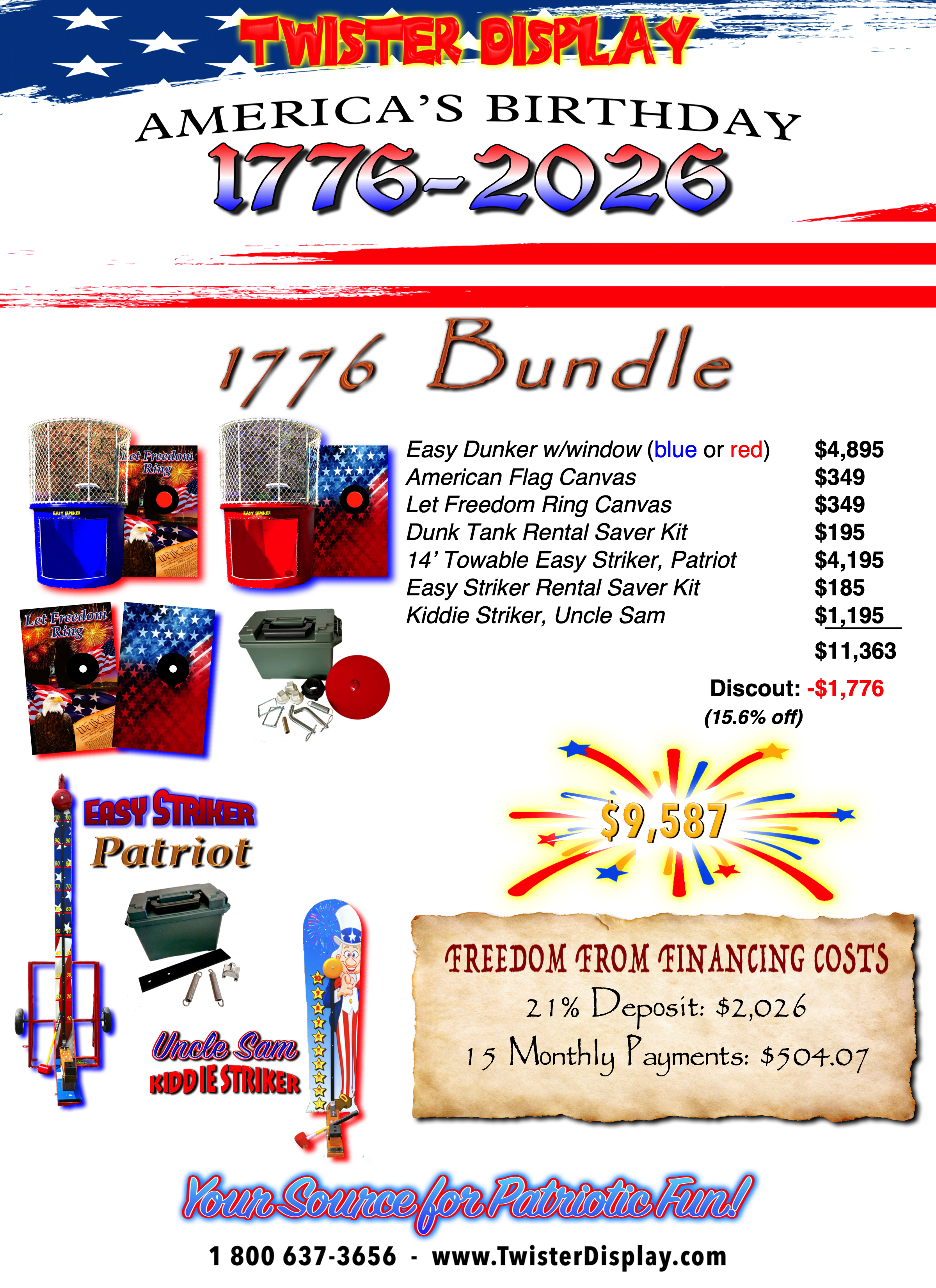 Prepare to celebrate America's 250th birthday with Twister Display's 1776 Bundle and exercise your freedom to SAVE!